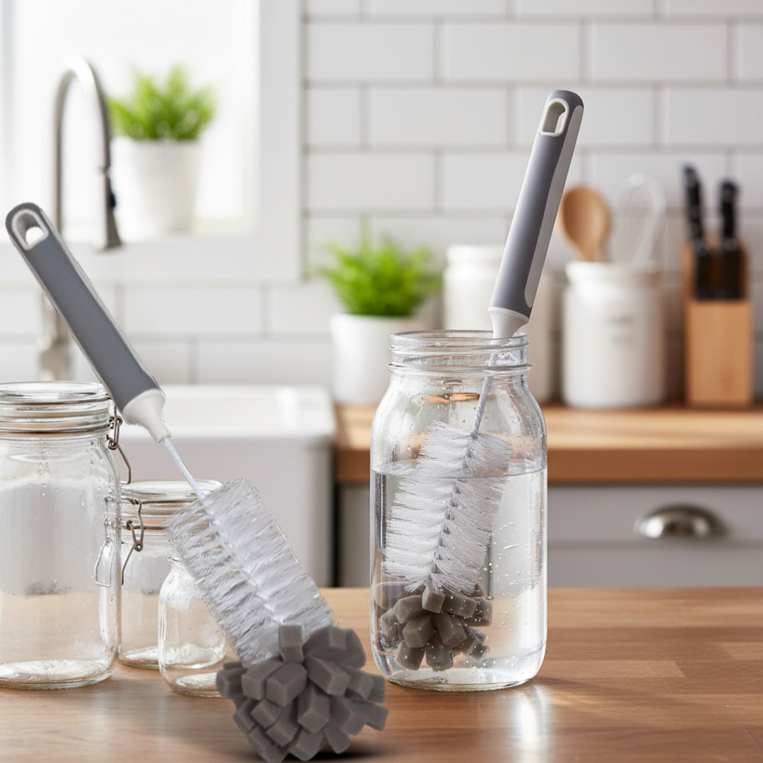استخدام يومي متعدد: مثالي لتنظيف رضاعات الأطفال، زجاجات الماء، البرطمانات، الأكواب، والحاويات الضيقة في المطبخ أو المنزل.