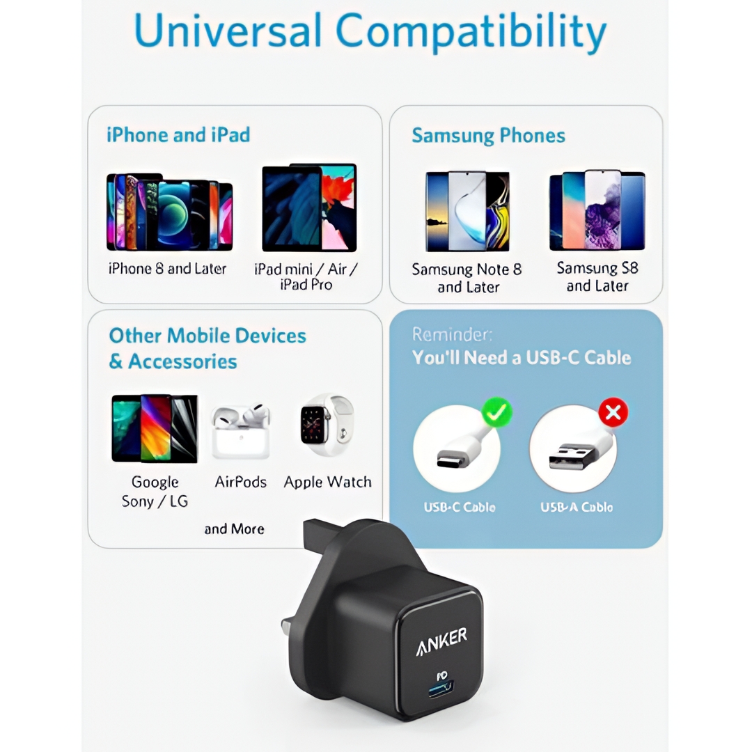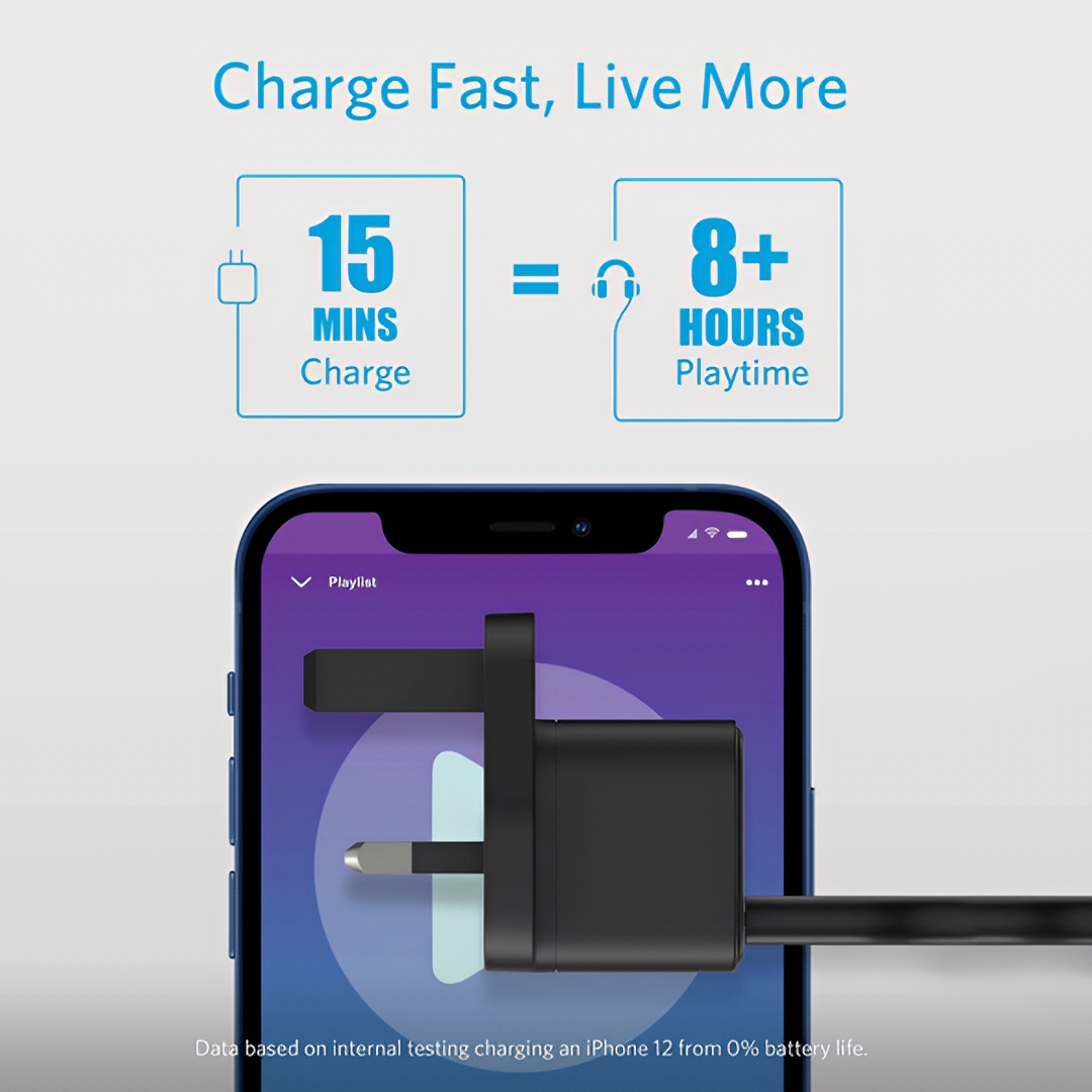 قدرة شحن سريع 20 واط: يوفر شحنًا عالي السرعة بتقنية Power Delivery (PD)، مع سرعة تصل إلى 3 أضعاف مقارنة بالشواحن العادية للأجهزة المتوافقة.