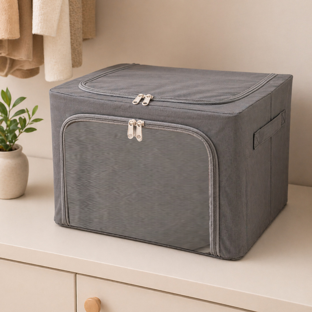نافذة شفافة ومقابض حمل: يحتوي على نافذة أمامية شفافة للتعرف السريع على المحتويات، مع مقابض جانبية قوية لسهولة الحمل والتنقل.