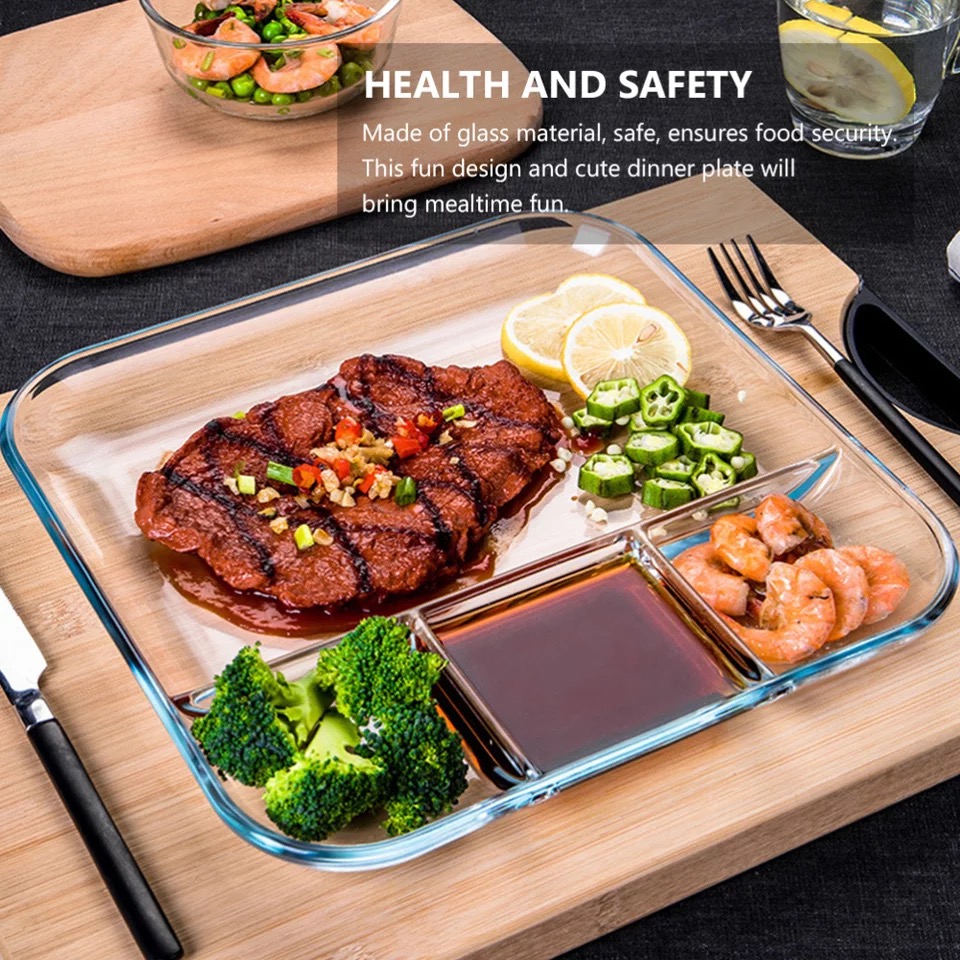 صحن زجاج مقسم مصنوع من مادة زجاجية ، مثالي للأرز والباستا والسلطات والحبوب وغيرها من الأطعمة ، إنه طبق طعام رائع لمنزلك .