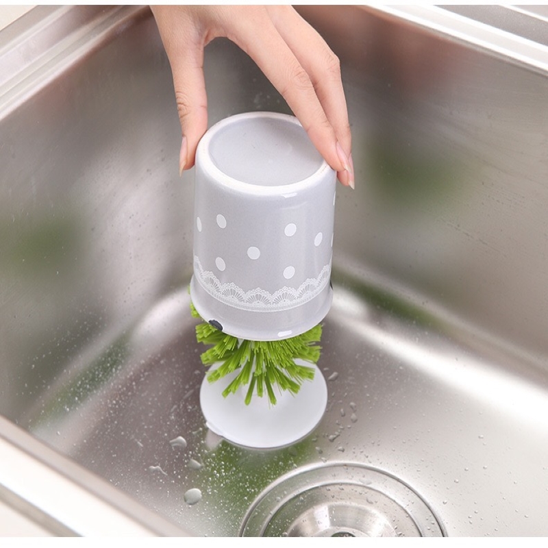 5. Care & Use: Wash by hand. For best results, fill sink or bowl with enough soapy water to cover half the height of the brush. Ensure suction cup is pushed firmly onto a smooth, level surface.