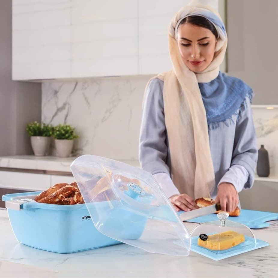 Lemon bread box has a handle and a lid that is made of quality plastic.