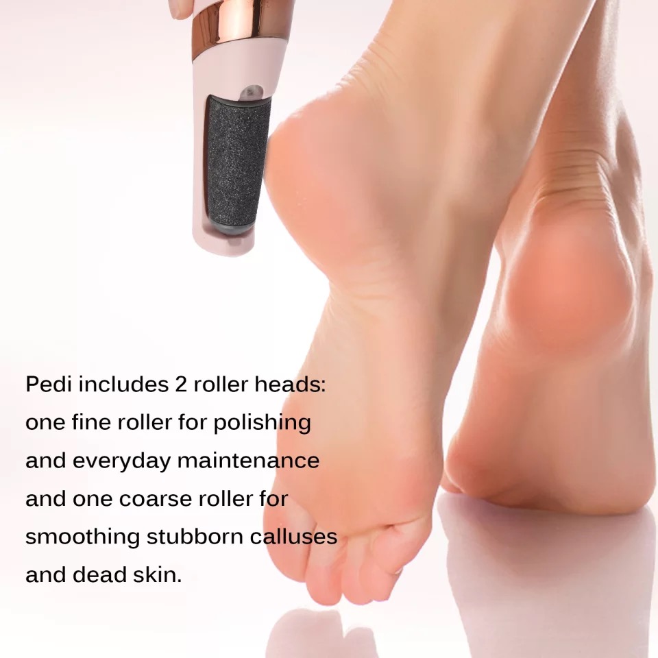 Upgrade Foot Callus Remover: Pedicure Foot File has a powerful motor that makes it perfect for use on extra-tough areas. The rollers are made from quartz crystals that spins 360 degrees for quick results on thick, calloused skin without causing discomfort.
