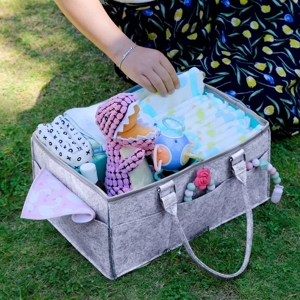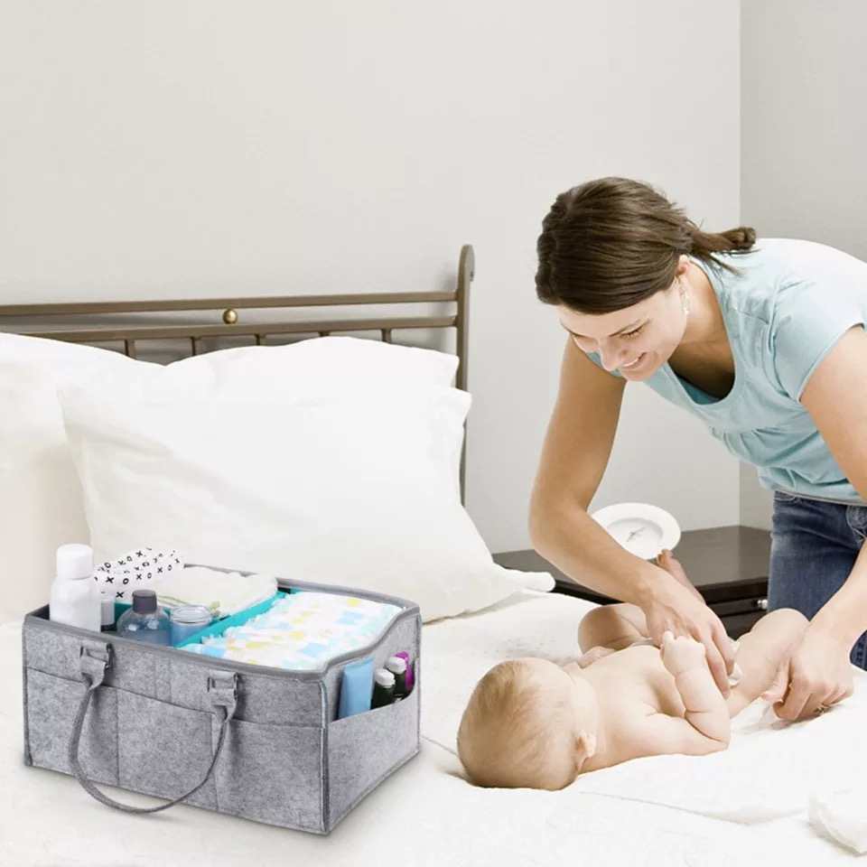 4. Designed with neutral gray color, the diaper caddy basket is suitable for any room