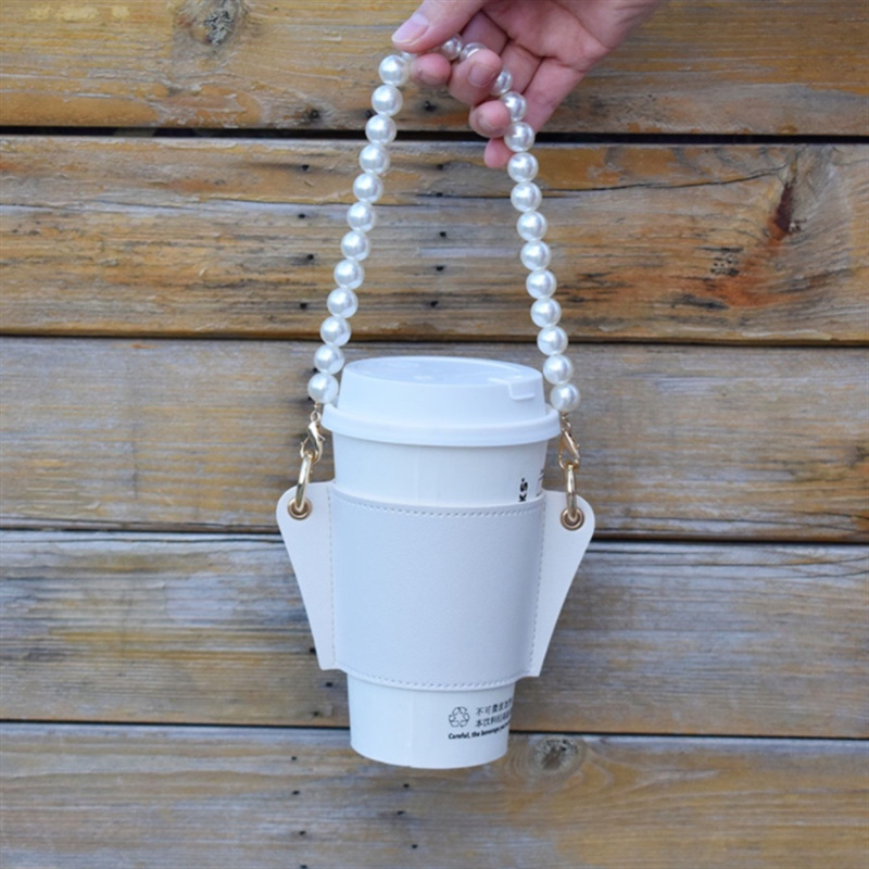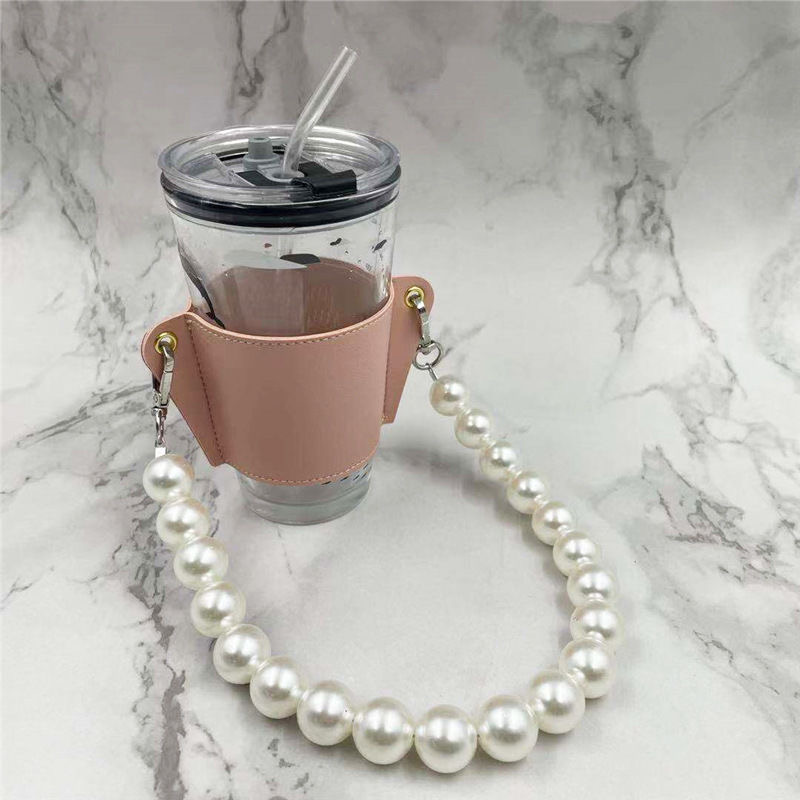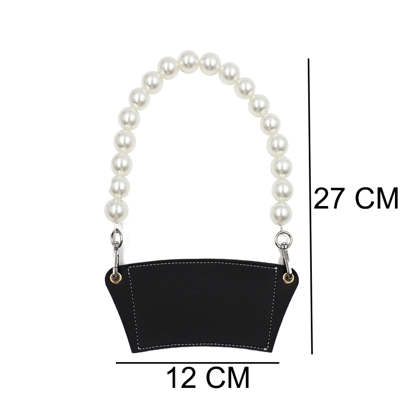 Description: Eco-Friendly PU Leather Portable Cup Holder Ecological leather, no peculiar smell Stylish appearance, portable The chain is pearl, detachable Features:- Material: PU leather Size: 12*27 cm