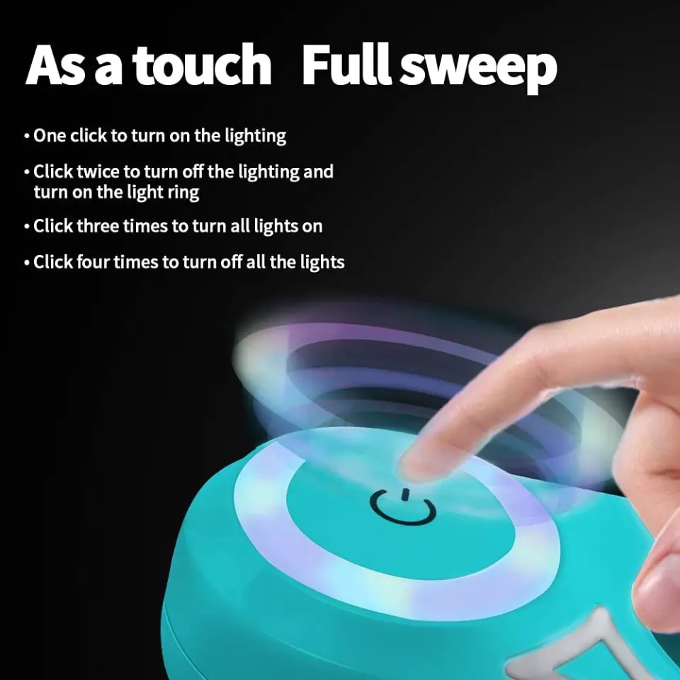 2. Switch Introduction: 1 touch: turn on the lighting. 2 touches: turn off the lighting and turn on the light ring. 3 touch: turn on both the lighting and the light ring. 4 touch: turn off the light ring and lighting.