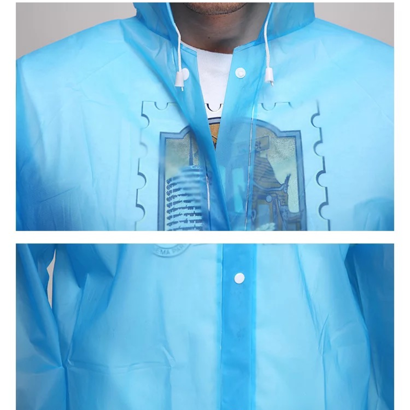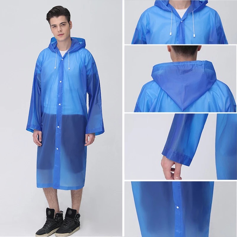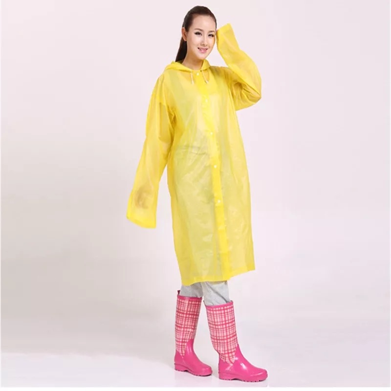 FEATURES:- Material: EVA Length: 110cm Sleeve length: 78cm Cap height: 30cm for height: 150-180cm Type: Raincoats Gender: Men, Universal, Women color: / Pink/yellow/light blue/dark blue/transparent.