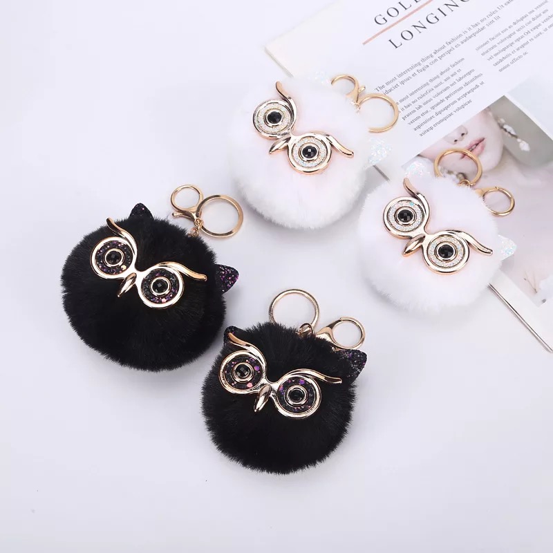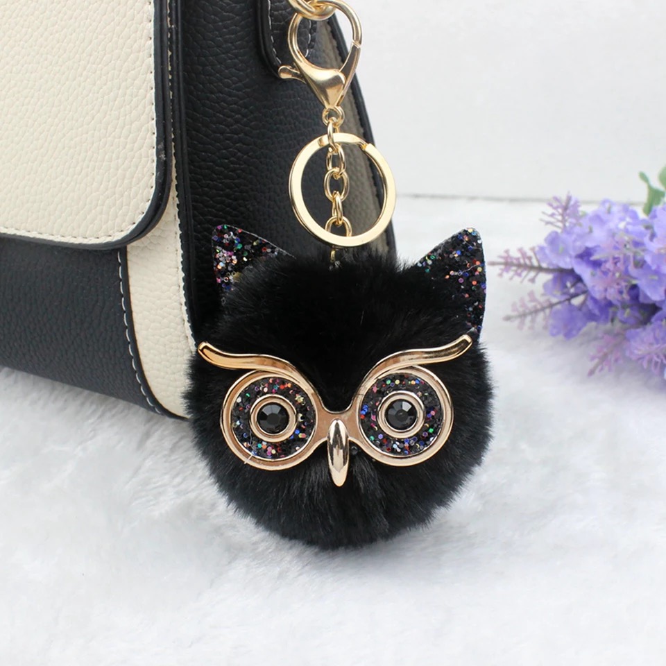 Lovely Sequin Ear Owl Keychains for Girls Boy Fluffy Fake Animal Fur Ball Pompon Key Chain Charm Women Bag Key Ring Teacher Gift. Its usable to Hand bags and decor in car’s interior and wallet for many ways.