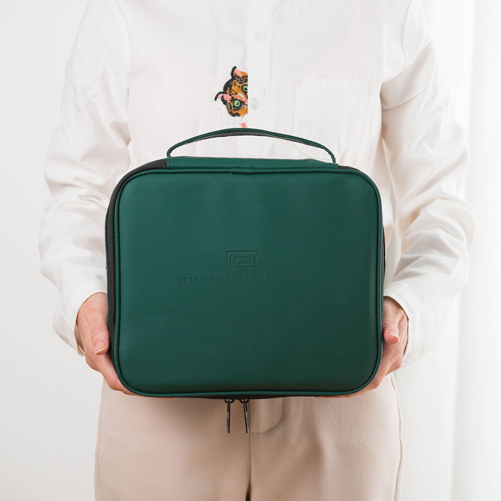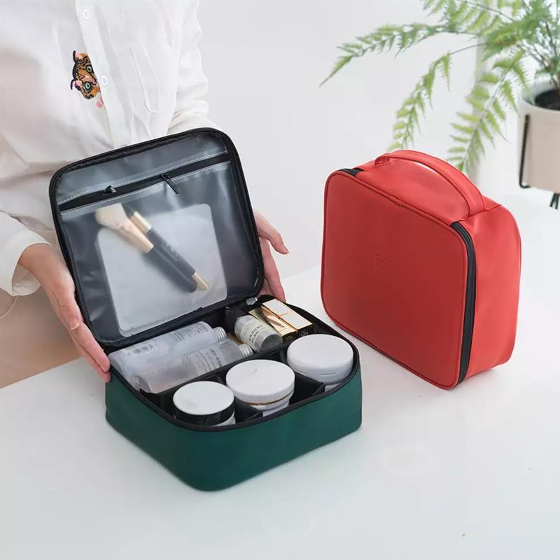 Provides ample space to fit in women's cosmetics, makeup essentials such as makeup brush, lipstick, eye shadow, skin care Products, shampoo, creams, nail art products, jewelry, hygiene, hairbrushes, travel accessories.