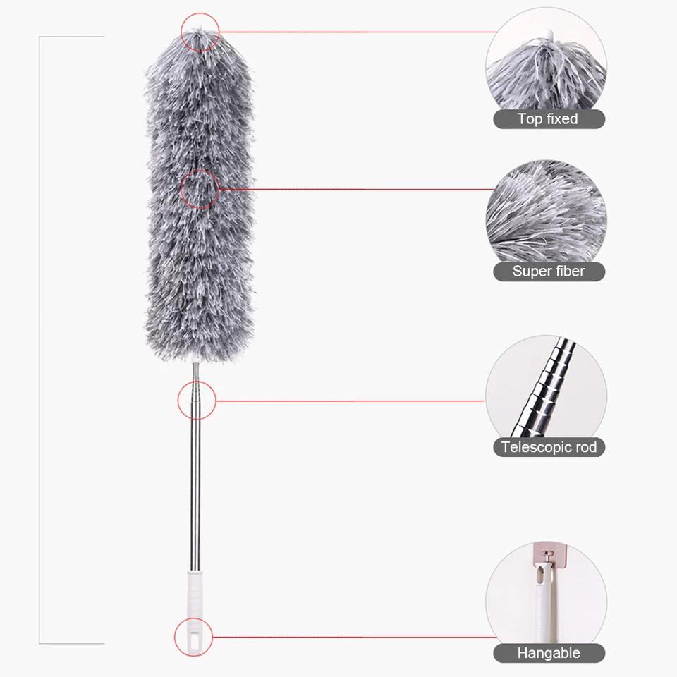 FEATURES:- Product parameter: Name: Extendable Feather Duster Material: PP + microfiber + stainless steel Color: grey Product size: as shown.