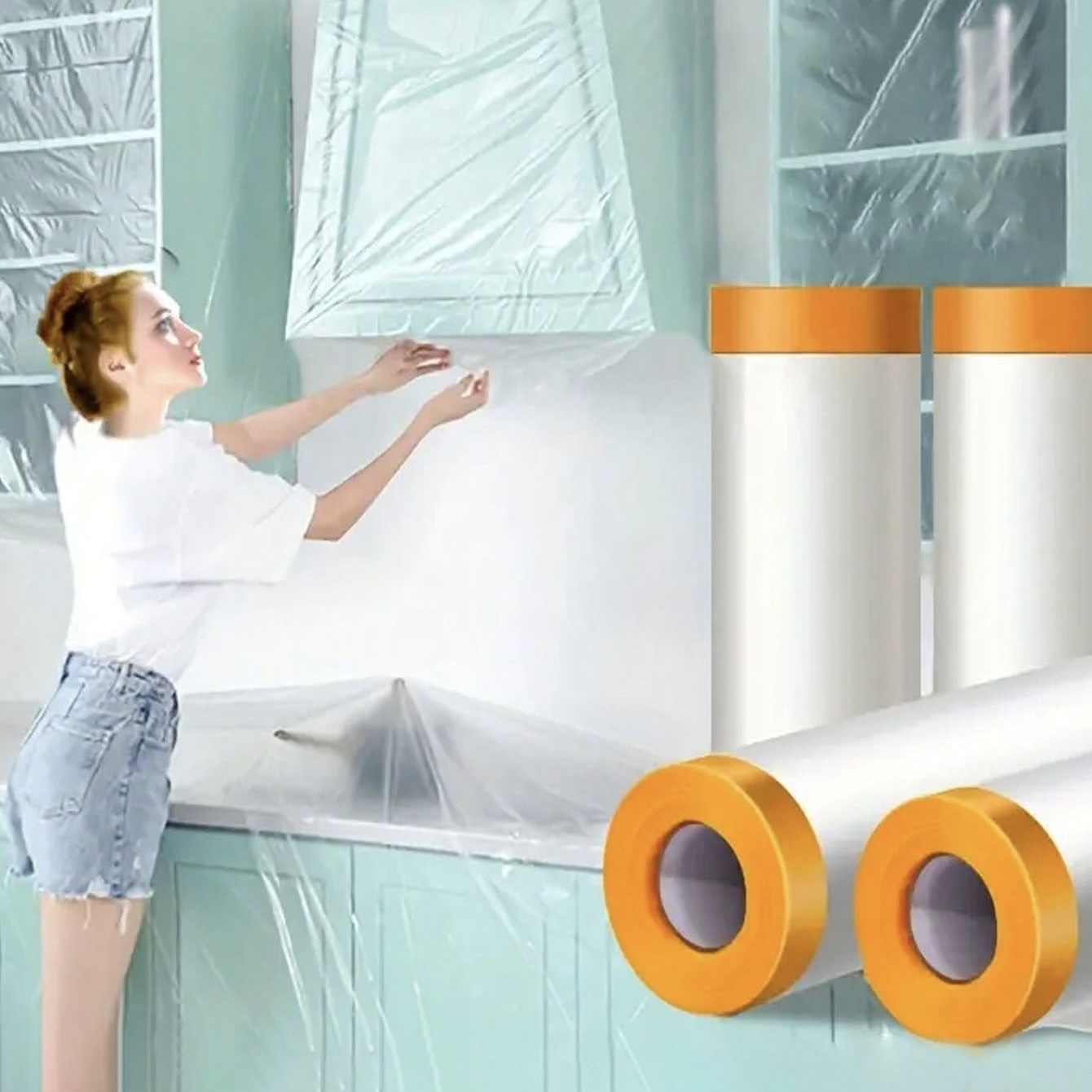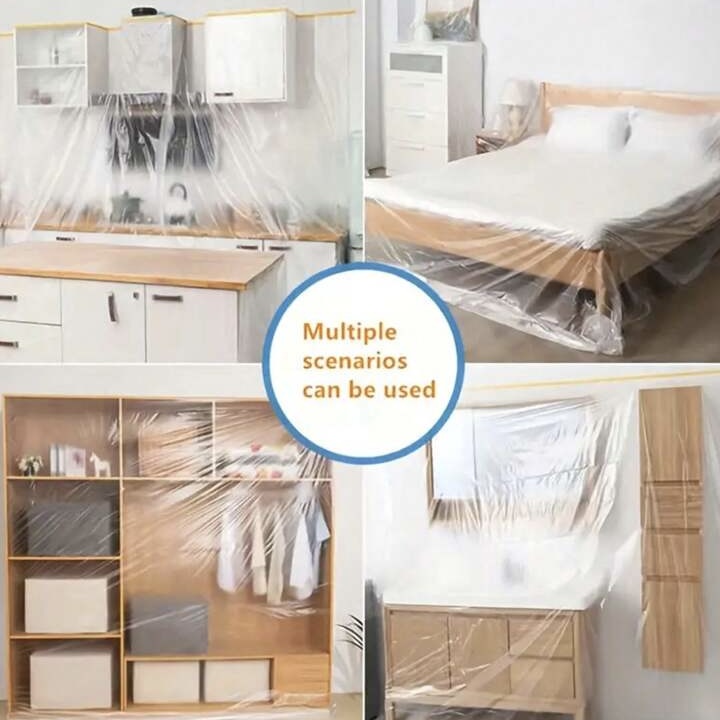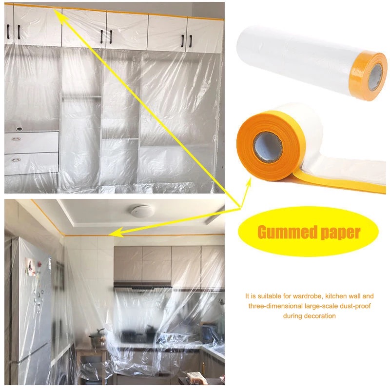 Self-adhesive function: Lightweight and tear resistant with integrated static cling. When plastic sheeting is covered, it can be freely attached to the surface of objects such as the automotive body, furniture and the wall surface to ensure complete protection.