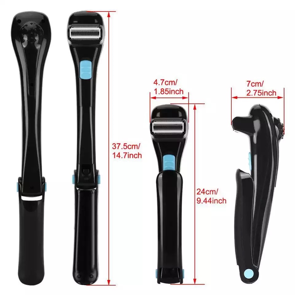 Extra-long handle design: The 180-degree foldable handle design extends the length up to 14.7 inches long adjustable door handle lock, spanning various lengths to reach the toughest middle and lower parts of the back. Now you can remove body hair anywhere by yourself