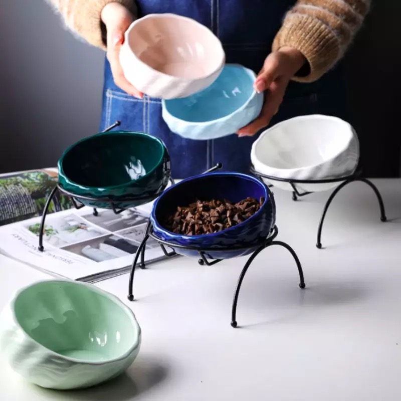Material: This feeding bowl uses a painted iron frame as a dish rack, which is non-slip and stable, preventing the meal from tipping over.
