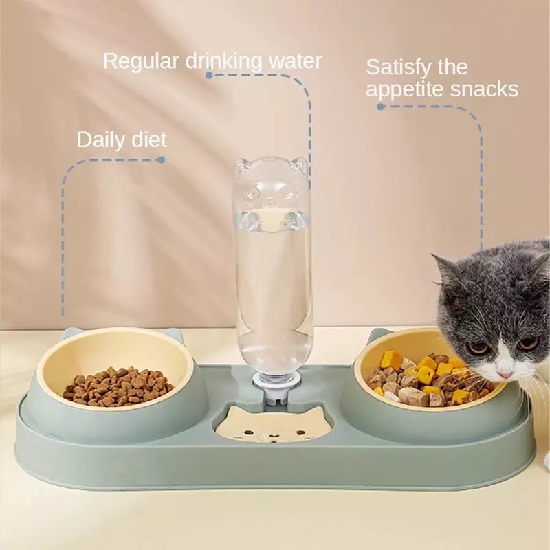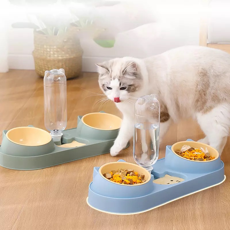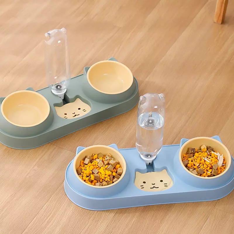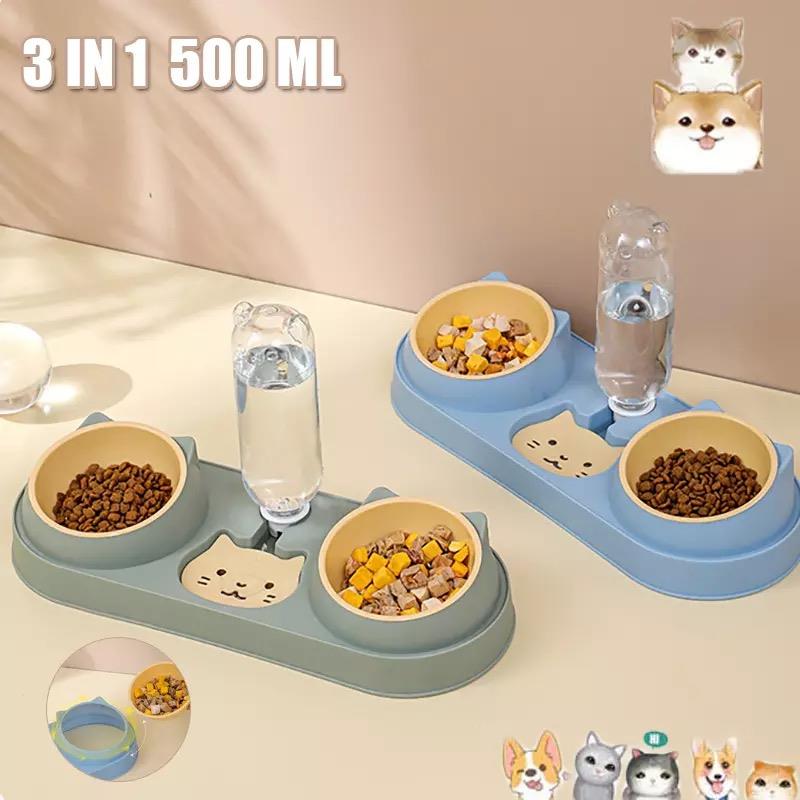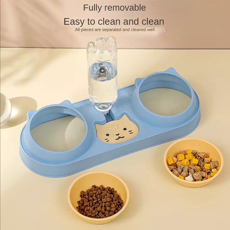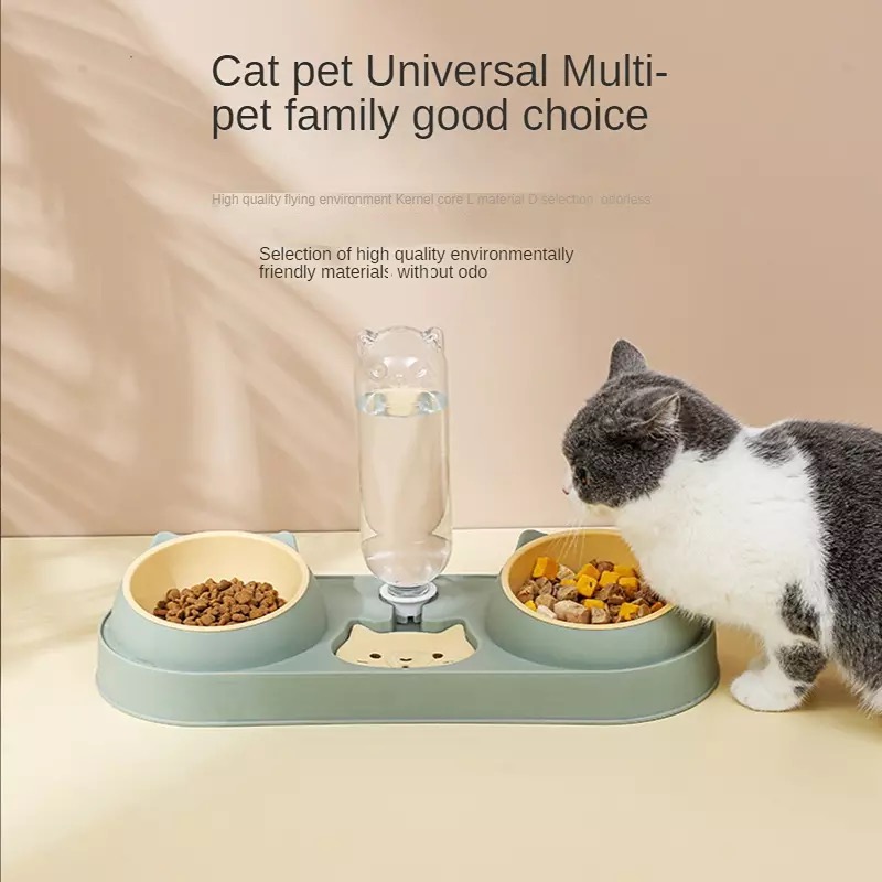 Multifunctional cat bowl: Double bowl is designed for wet and dry food, it allows multiple pets to eat at the same time.
