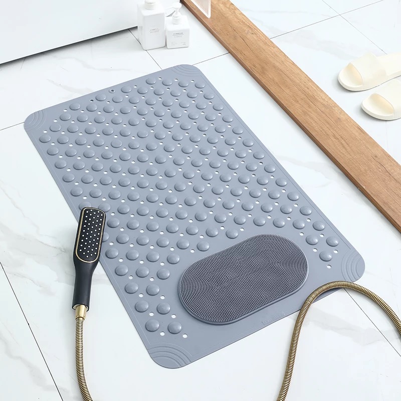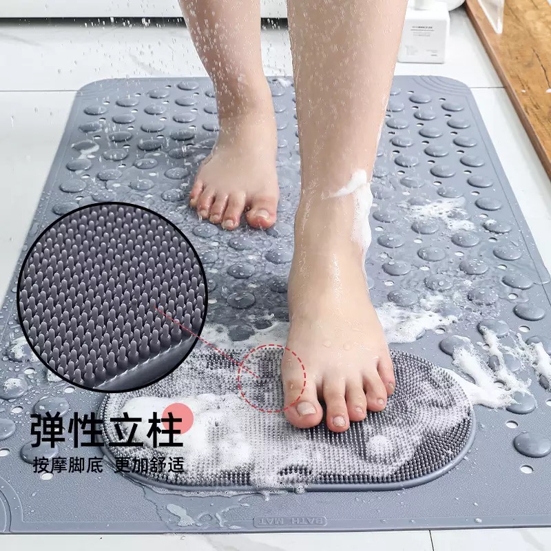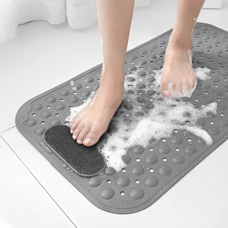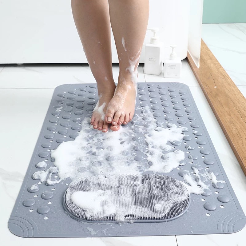 MULTIFUNCTION: No Need to Bend Over, our bath mats matched shower foot scrubbers, you no longer need to bend over or try to keep balance when cleaning your feet. Just move back and forth on the brush and your feet will be clean. The scrubber is suitable for people at any age, especially for arthritis, hip/knee/back pain, athletes, pregnancy, the elderly, injury and more. It is not only shower mat but also foot cleaner.