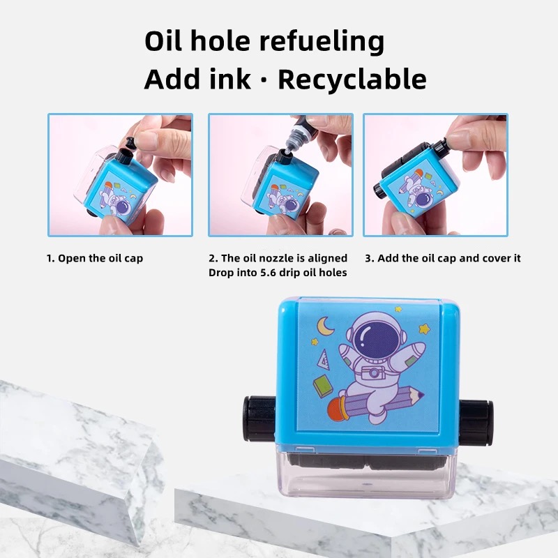 [Reusable Teaching Stamp] Small and compact, easy to carry, comes with a bottle of ink (open the black round cap on the handle and drop 5-6 drops of ink for reuse).