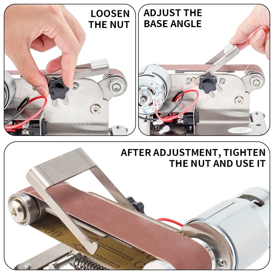 The abrasive belt wheel is equipped with double bearings, which is anti-skid design, stable operation, high speed, high torque and quieter.