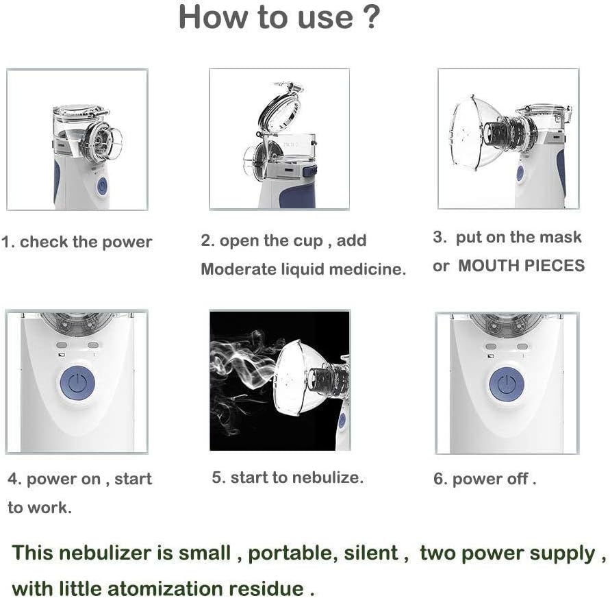 Easy to use: operation according to medical instructions can dissolve and produce high-frequency smog. This lightweight nebulizer works continuously from different angles and is suitable for home, office and travel.