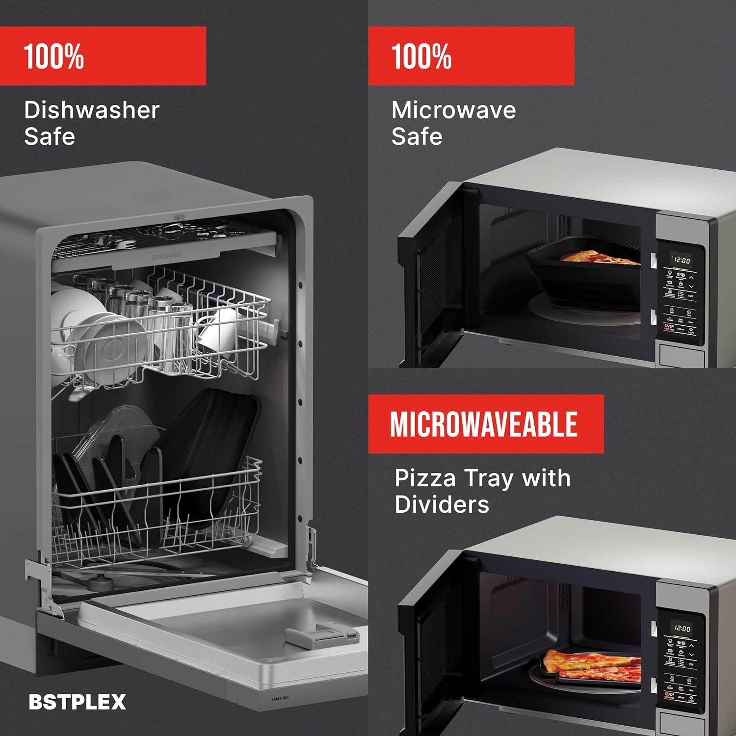 Flexible, Heat-Resistant Silicone – Our microwaveable serving trays are made with high-quality, BPA-free silicone which makes them stain and heat resistant, so you can safely reuse them an and again and store them in the fridge or freezer.
