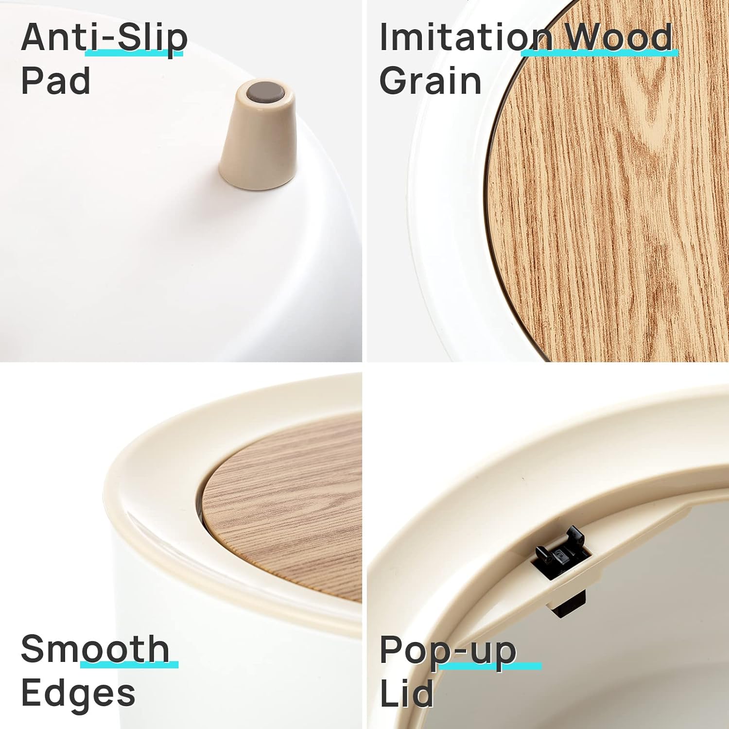 【Press Type Lid】Just press to open the lid. The design of the lid effectively reduces the odor. At the same time, keep the desktop clean and become a beautiful decoration on the desktop.