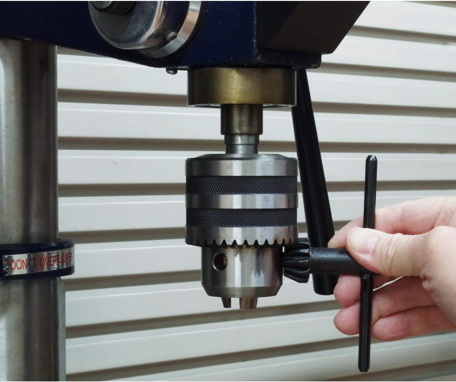 The handle requires a wrench to provide the torque needed to tighten and loosen the jaw.