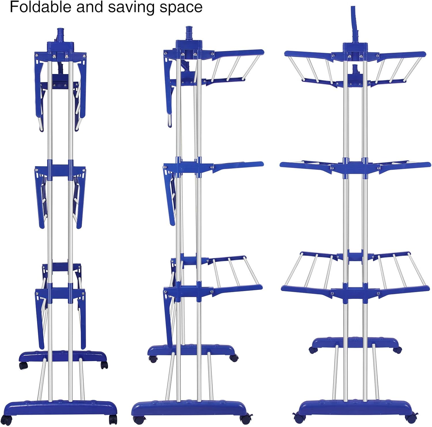 High-Quality and Rustproof: The clothes’ drying rack is made of high hardness stainless steel and thicker plastic,its own weight is about 5.4kg/11.9lb, and it can bear a weight of about 35kg/77.16lb, which is very affordable and durable.