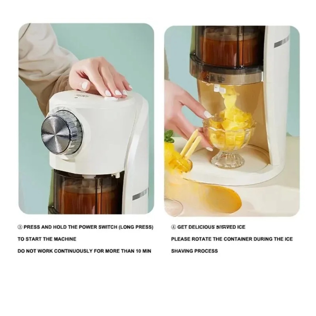Powerful Ice Shaving Performance: Equipped with a high-speed motor and sharp blades that efficiently crush ice into fine, fluffy snow for refreshing drinks and desserts.