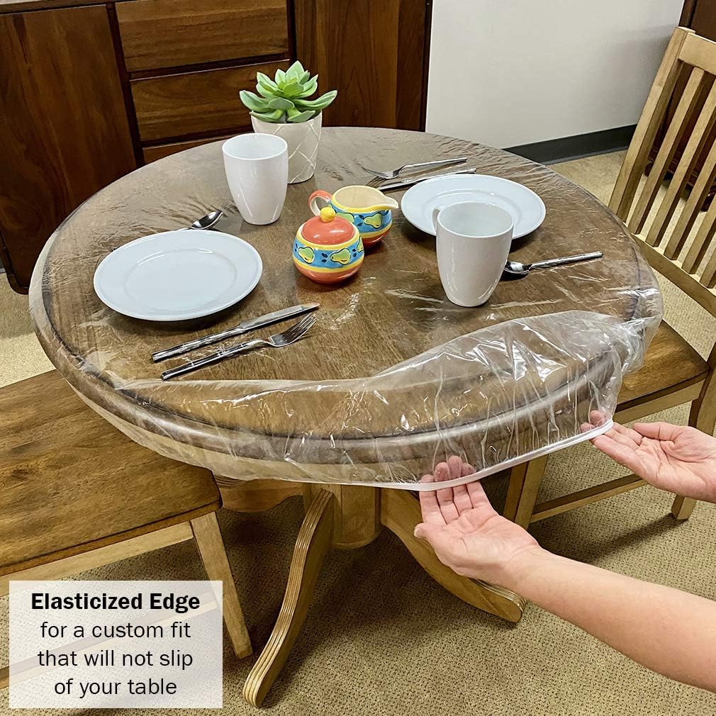[Features]: The elastic table cover is transparent, waterproof, oil-resistant and disposable for easy cleaning after use.