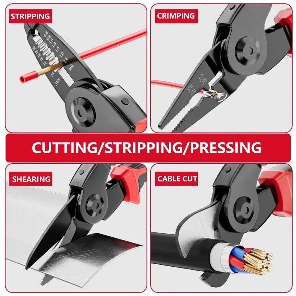 High Cutting Power: The 5 in 1 multi-purpose versatile tool kit can cut steel wire/iron wire/copper wire/electrical wire with ease. The sharp blades of the pliers tool ensure a clean and precise cut every time.