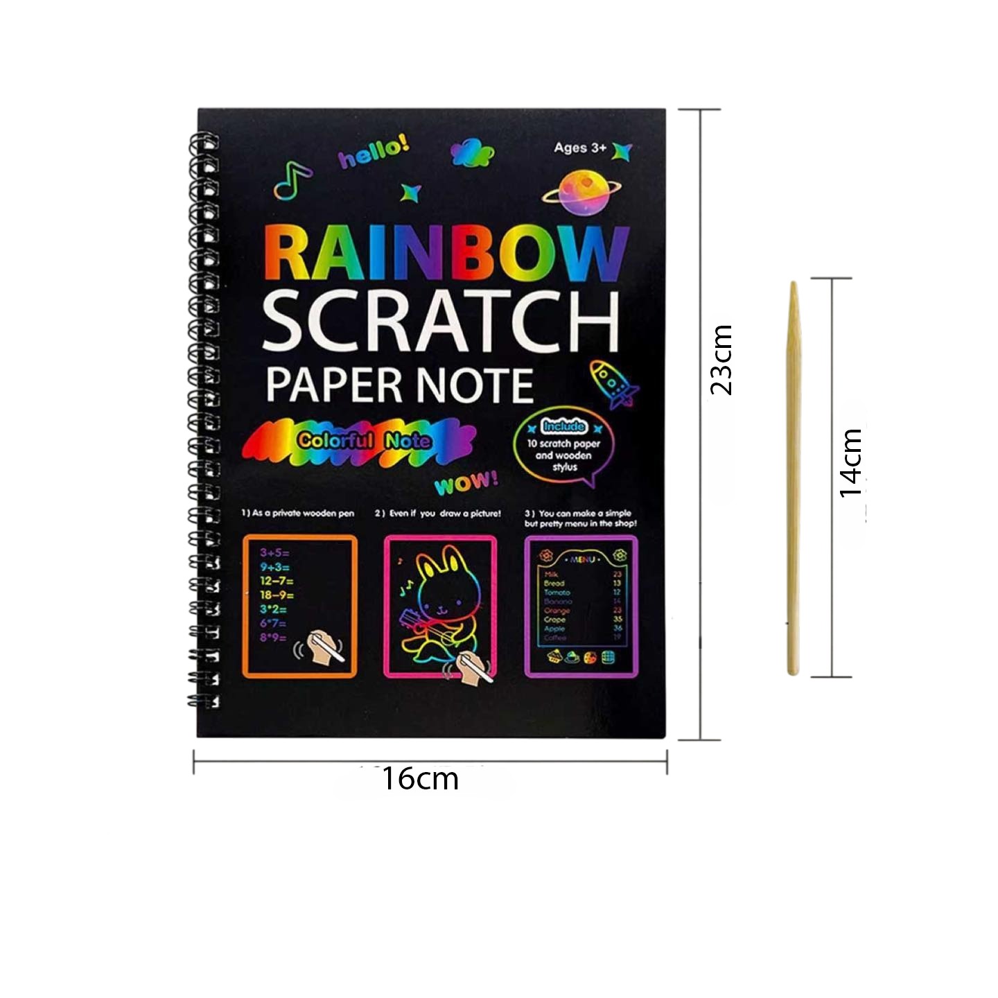 RAINBOW SCRATCH ART CARDS: Glossy colors hide under black matte coating; you can use the wooden stylus we provide to draw patterns you like