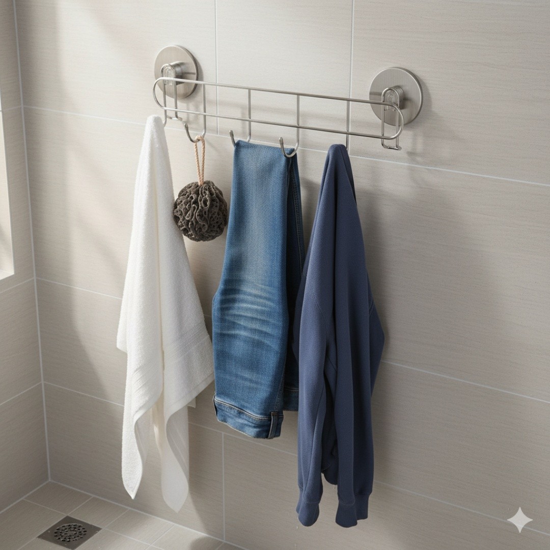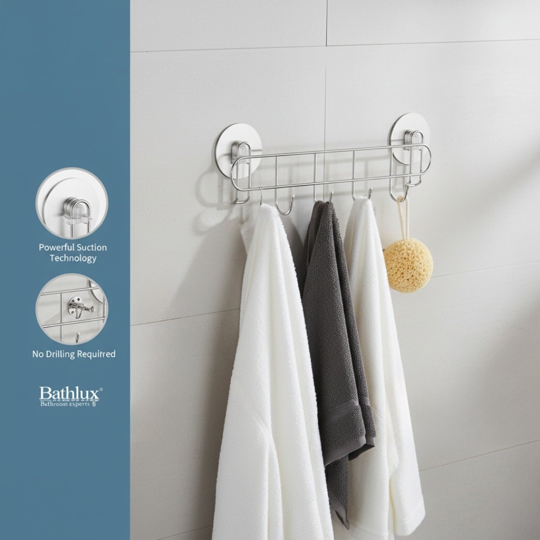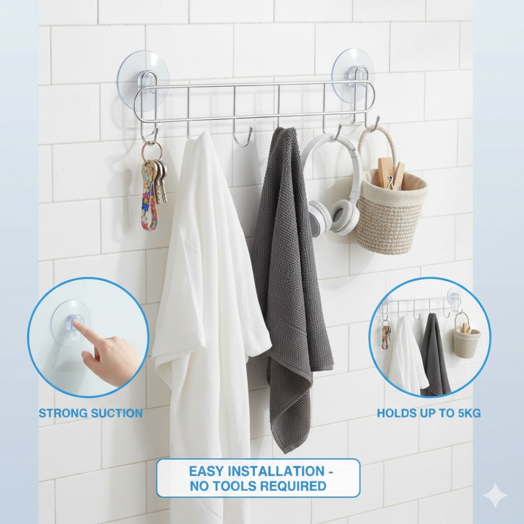 Multi-Hook Storage: Equipped with five sturdy hooks for hanging towels, robes, loofahs, and accessories efficiently.
