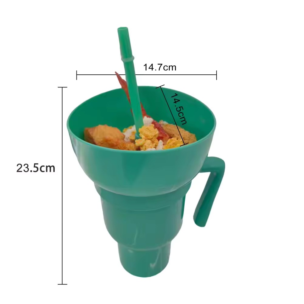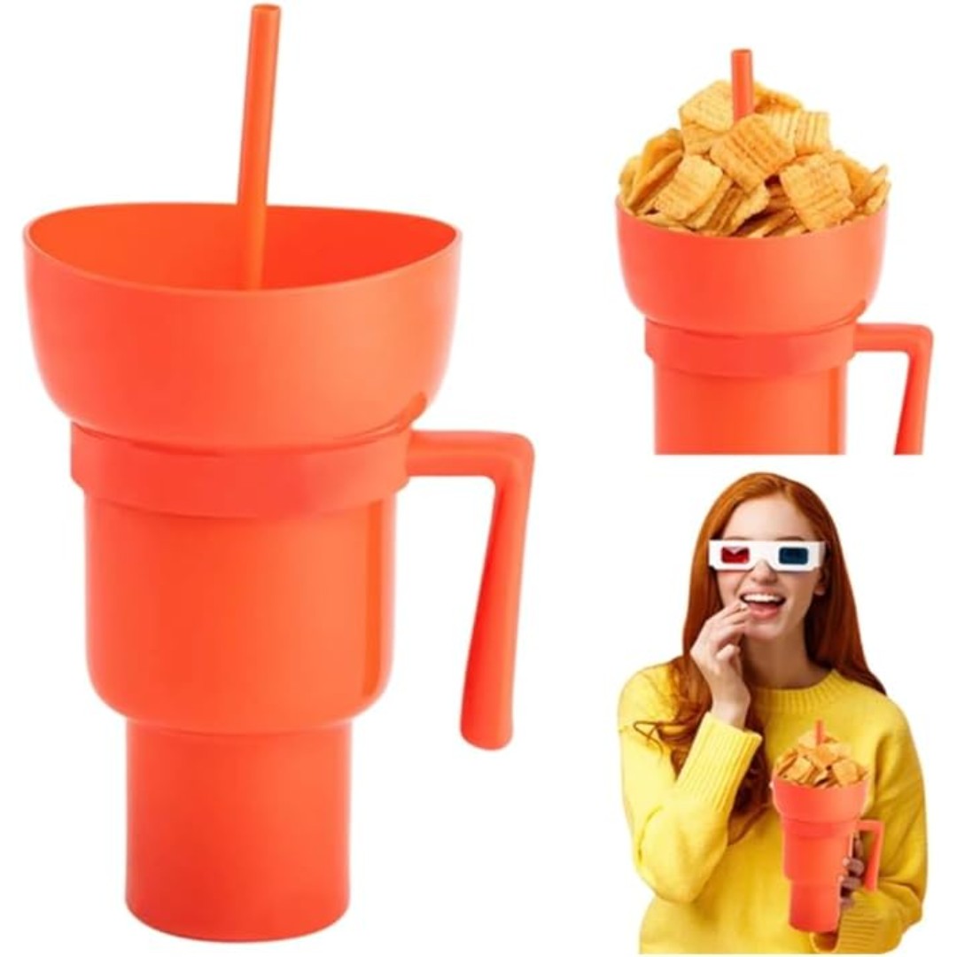 2-in-1 stadium cup for enjoying snacks and drinks.