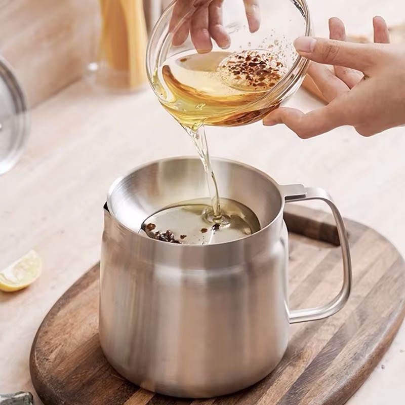 5. Made of food grade stainless steel, the oil storage can is durable and rust-resistant. Its polished exterior texture exudes both simplicity and elegance.