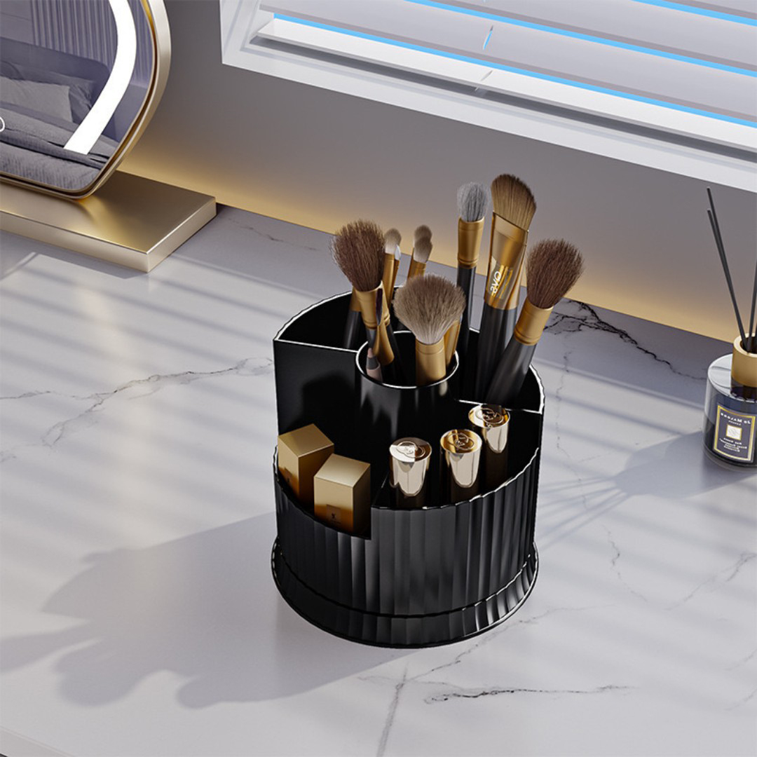 360° Rotating Organizer: Smooth rotating base allows easy access to all compartments, keeping makeup brushes, pens, and beauty tools neatly within reach.