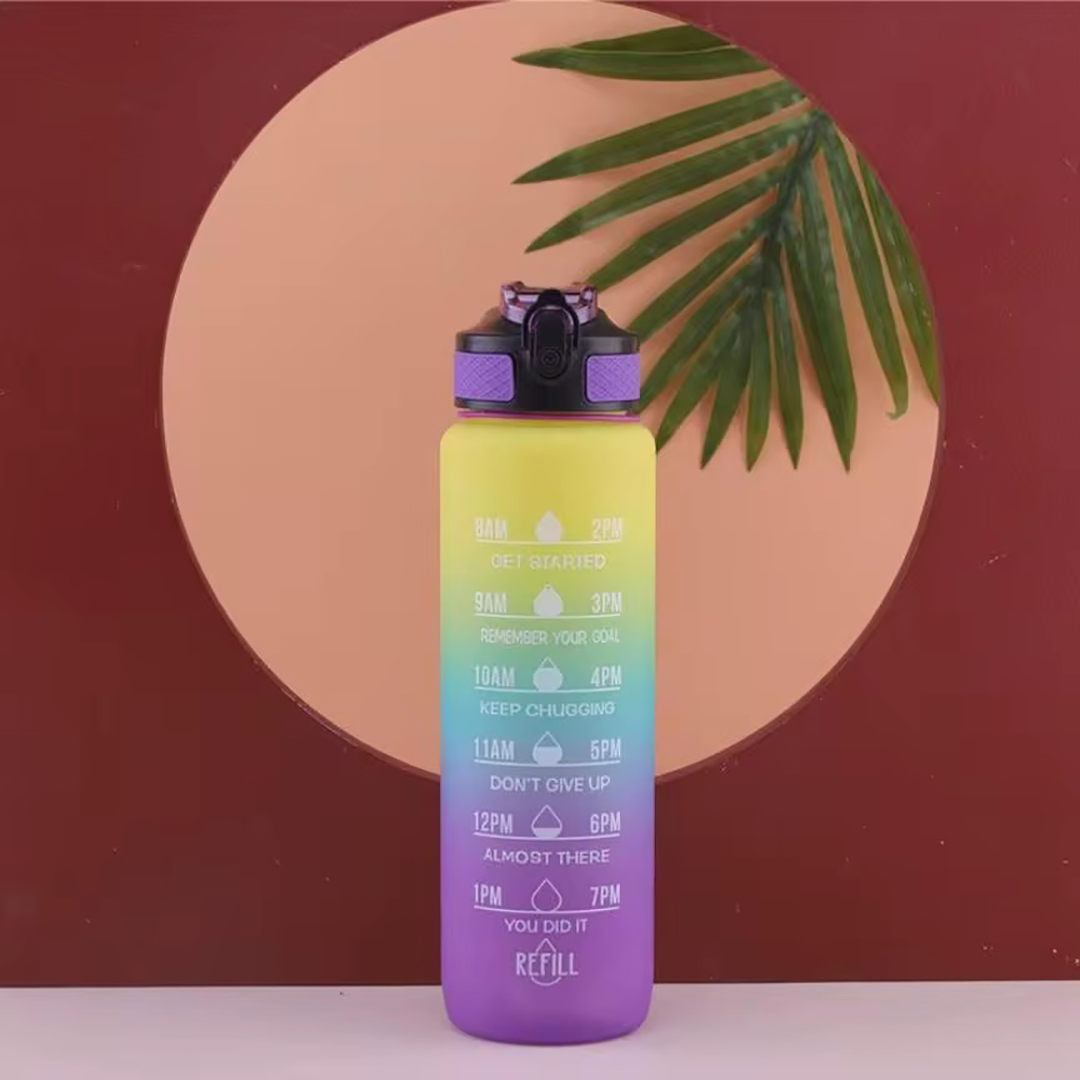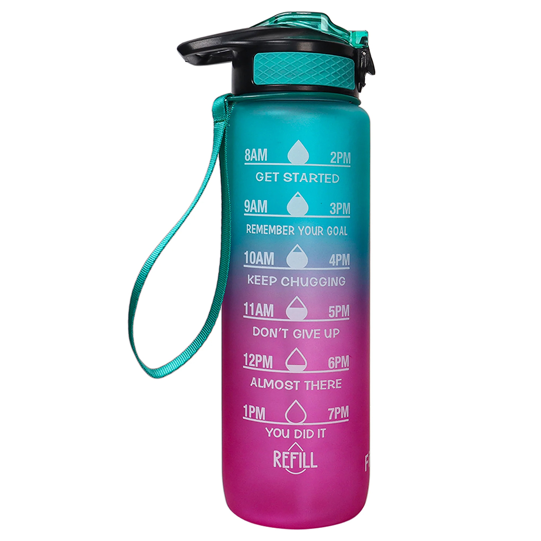 Motivational Time Markers: Features inspiring quotes and time markers to track daily water intake, promoting hydration and fitness goals.