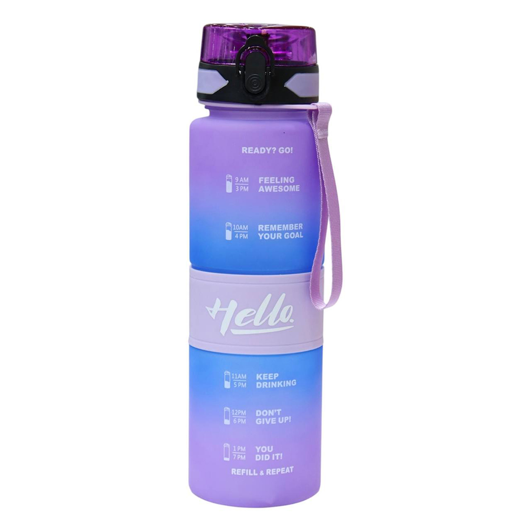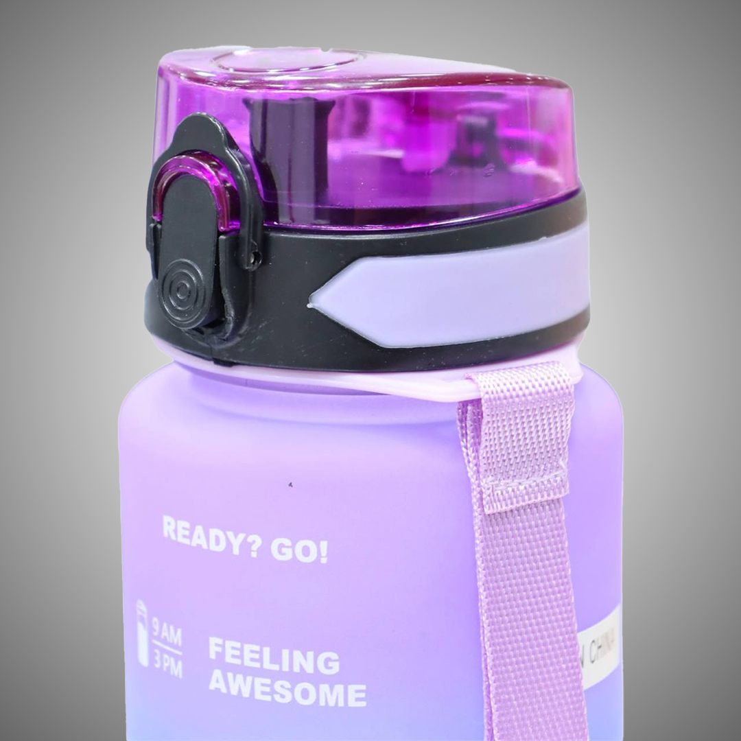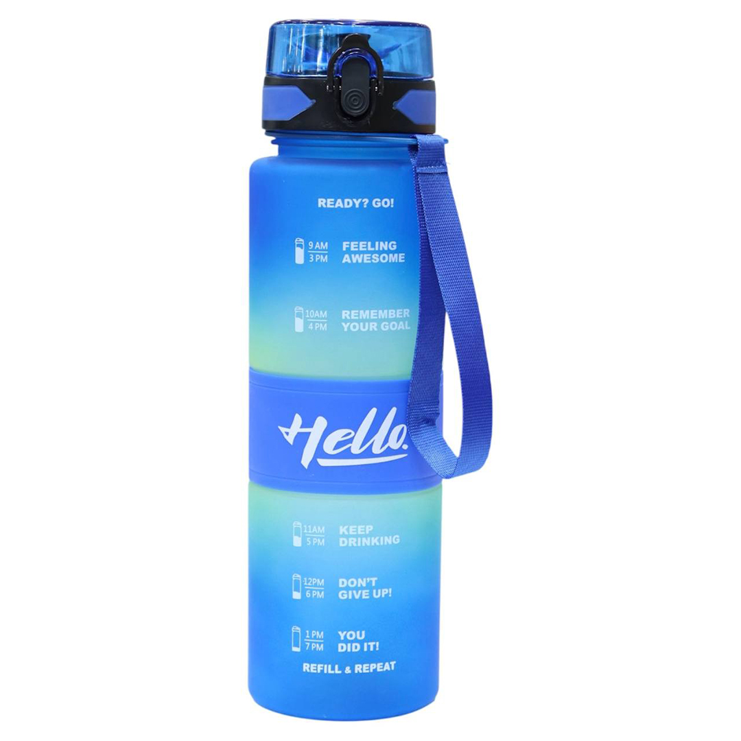 Motivational Time Markers: Features inspiring quotes and time markers to track daily water intake, promoting hydration and fitness goals.