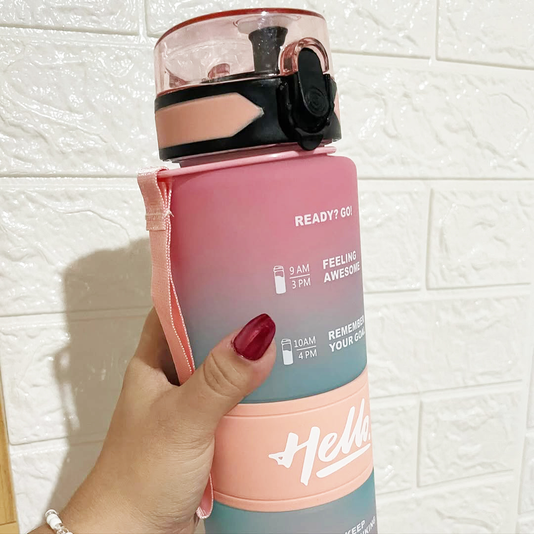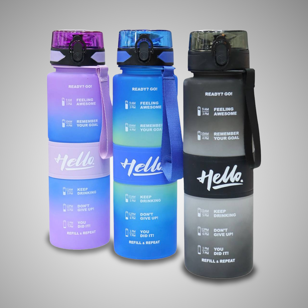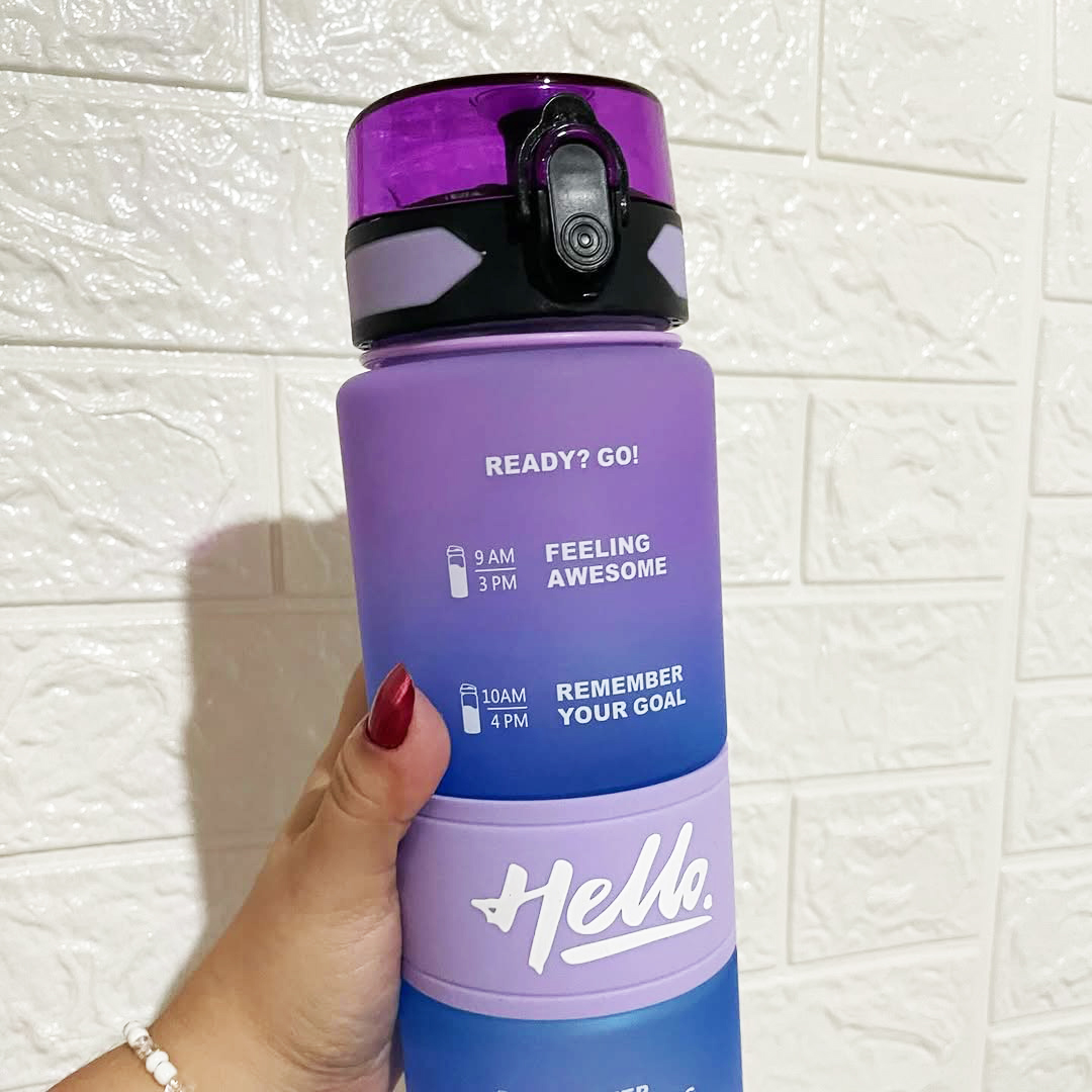 Motivational Time Markers: Features inspiring quotes and time markers to track daily water intake, promoting hydration and fitness goals.