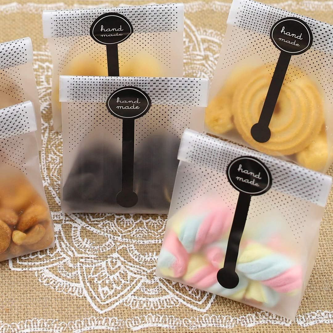 Pack & Size: Includes 50 bags (23 x 8.8 cm) and 50 black polka dot stickers (10 x 3 cm).