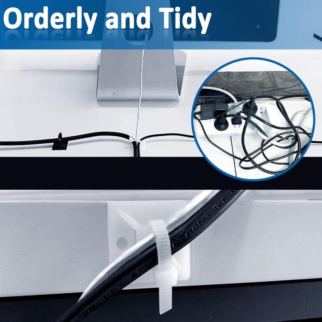 Easy to Use: Simply peel off the backing film and stick the cable holder to a smooth surface. The clips can be used with cable ties to attach and secure various items.