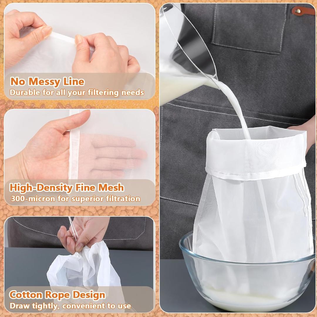 Multi-Purpose Functionality – Perfect for making nut milks, cold brew coffee, celery juice, yogurt, and other homemade beverages. Also works as a fine mesh food infuser or strainer.