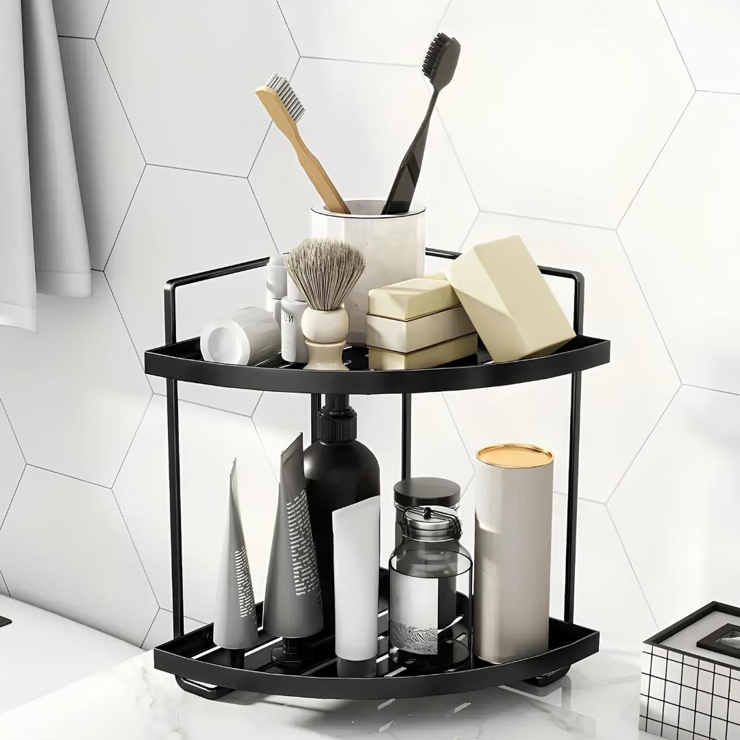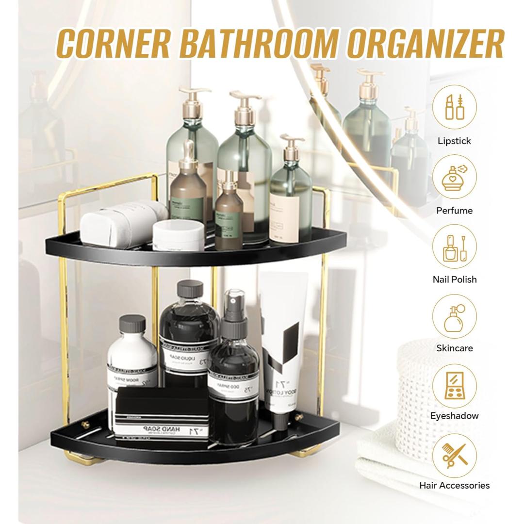 Maximize your counter or vanity space with this elegant 2-tier corner organizer. Perfect for storing and displaying perfumes, makeup, and skincare essentials, all while keeping them easily accessible.