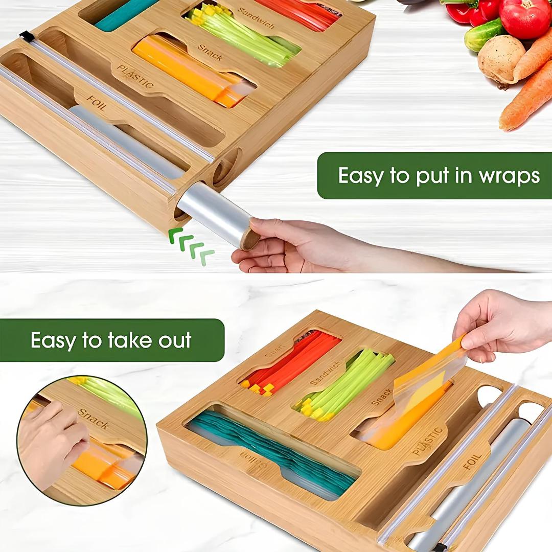 From Messy to Organized in Seconds: Say goodbye to cluttered drawers full of crumpled boxes and loose bags. This elegant bamboo ziplock bag organizer brings order and beauty to your kitchen, saving you space, time, and stress.