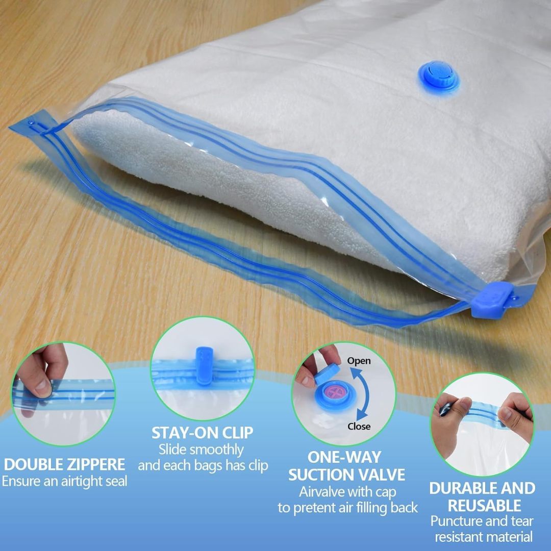 Maximize Storage Space – Save up to 80% space with these vacuum seal bags, perfect for seasonal storage, moving, or travel organization.