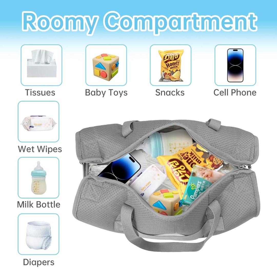 Compact & Travel-Friendly – Folds into a carry-on size (16" x 11.7") with an included travel bag; perfect for holding baby essentials like snacks, toys, diapers, and wipes.