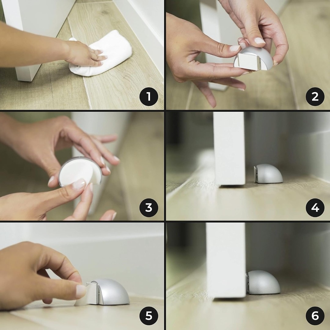 Compact & Stylish Design: Smaller than standard door stops, with a sleek look that prevents slamming while enhancing floor aesthetics.