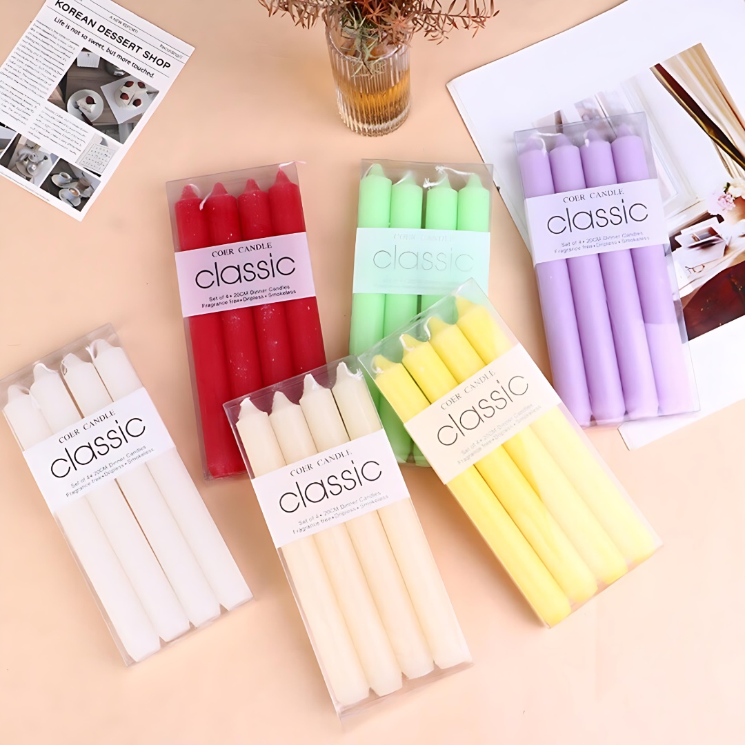 Set of Four: Conveniently packaged in a box of 4 candles—ideal for dinner parties, home décor, or gifting.
