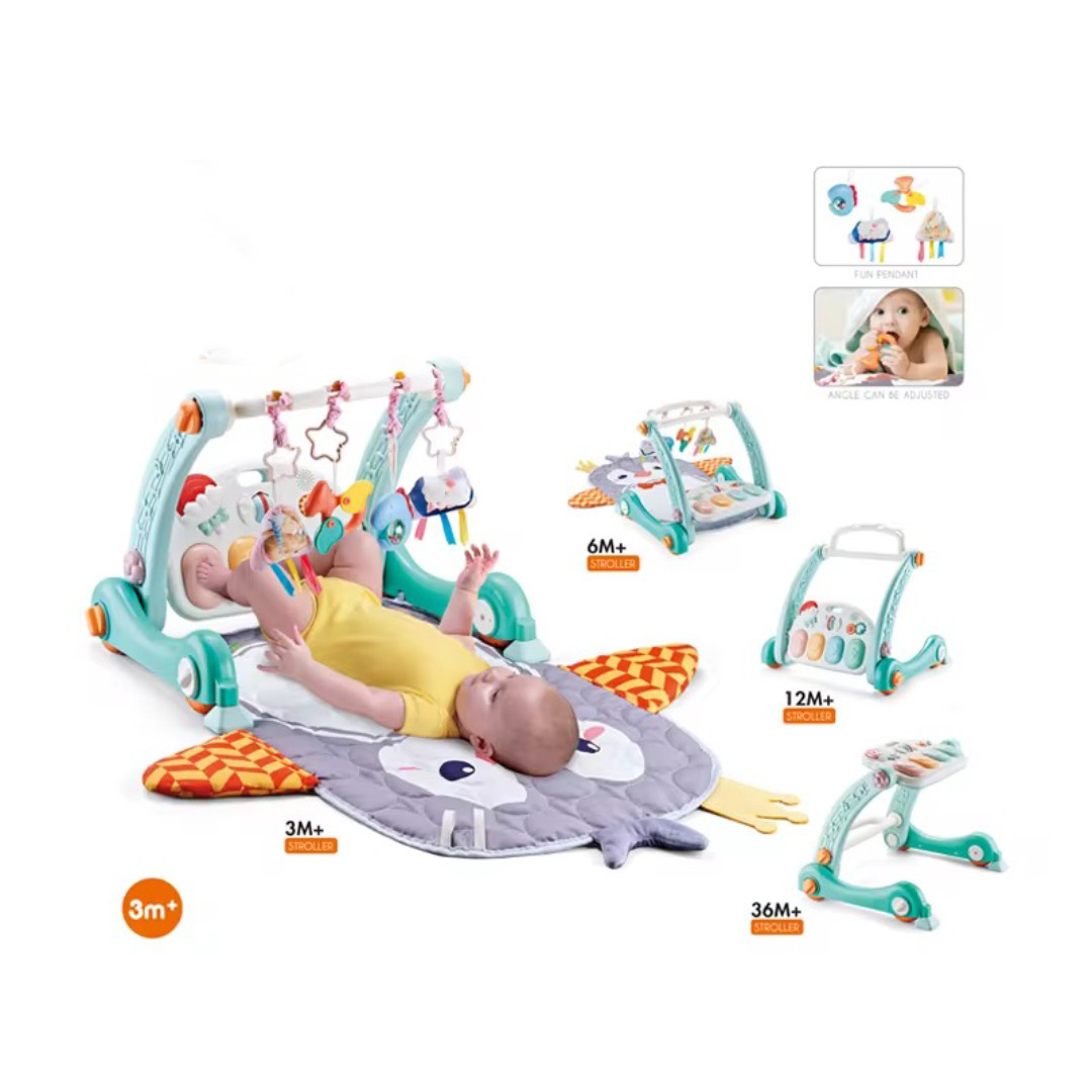 Multifunctional 4-in-1 Design: Combines a play mat, activity center, piano keyboard, and walker into one versatile toy, supporting stages from lying, sitting, crawling to walking (suitable from 3M+ to 36M+).