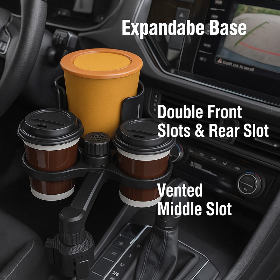 Versatile Multi-Slot Design – Equipped with double front slots, a spacious rear slot, and a vented middle slot, ideal for holding multiple drinks, snacks, or small items like a phone or utensils.