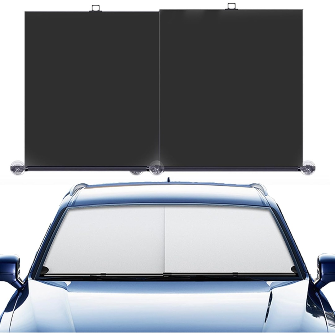 Discreet & Safe Installation – Mounts securely at the base of the windshield without dangling parts, ensuring a clear driver’s view; simply pull up and hook for instant sun and heat blocking.