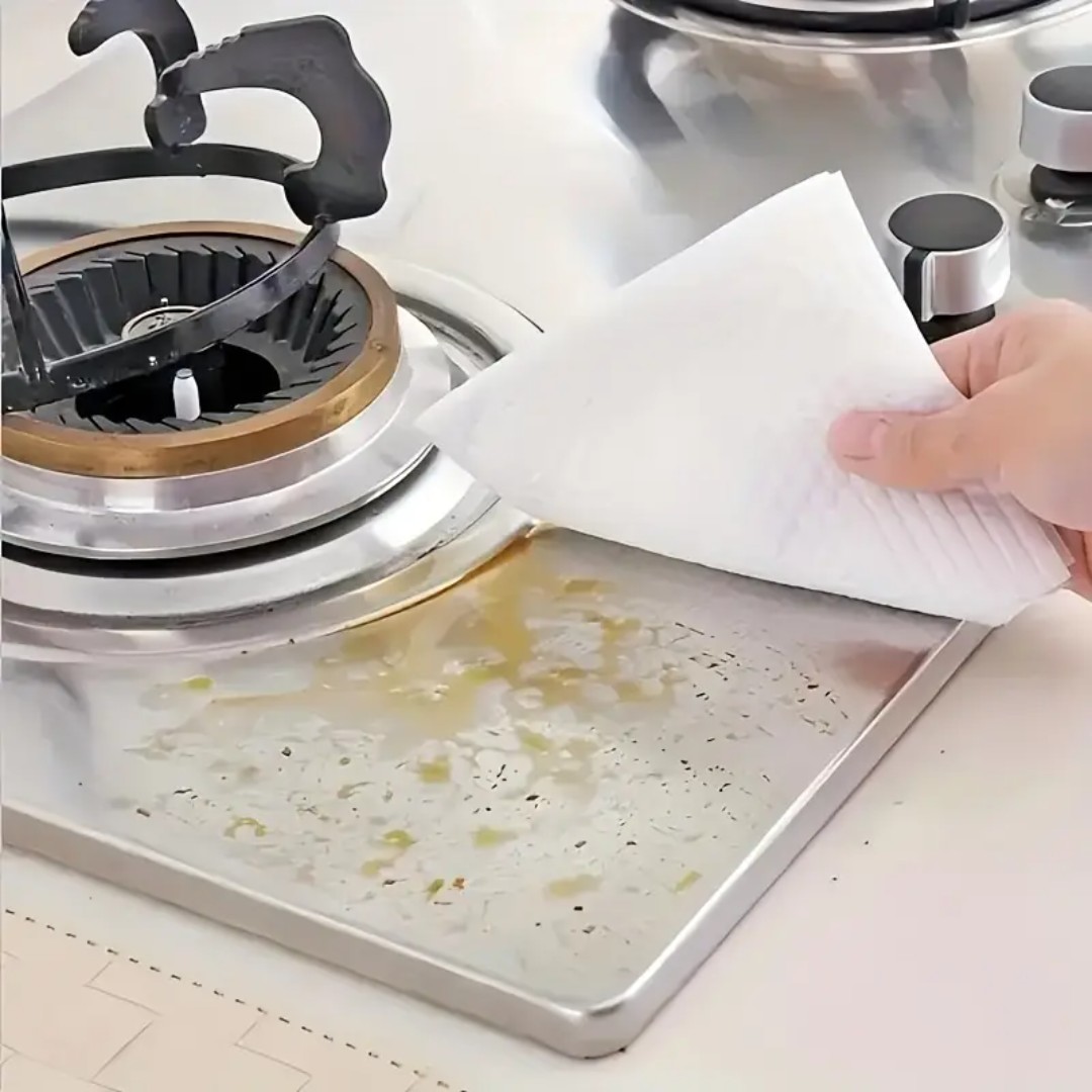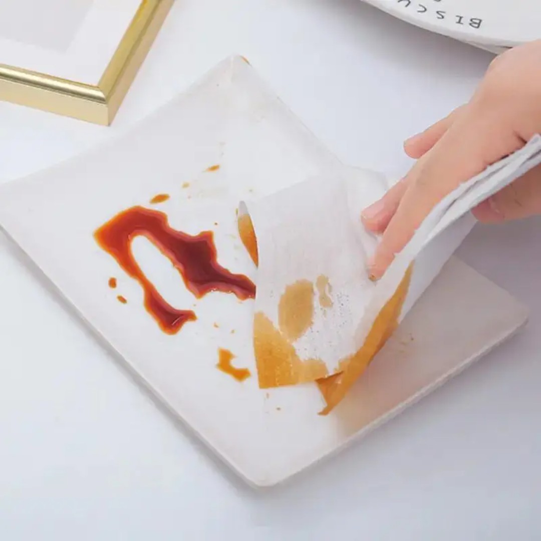 Highly Absorbent & Efficient – Made from premium non-woven fabric that quickly soaks up water, oil, and other liquids, making it perfect for kitchen spills, dish drying, and general cleaning.